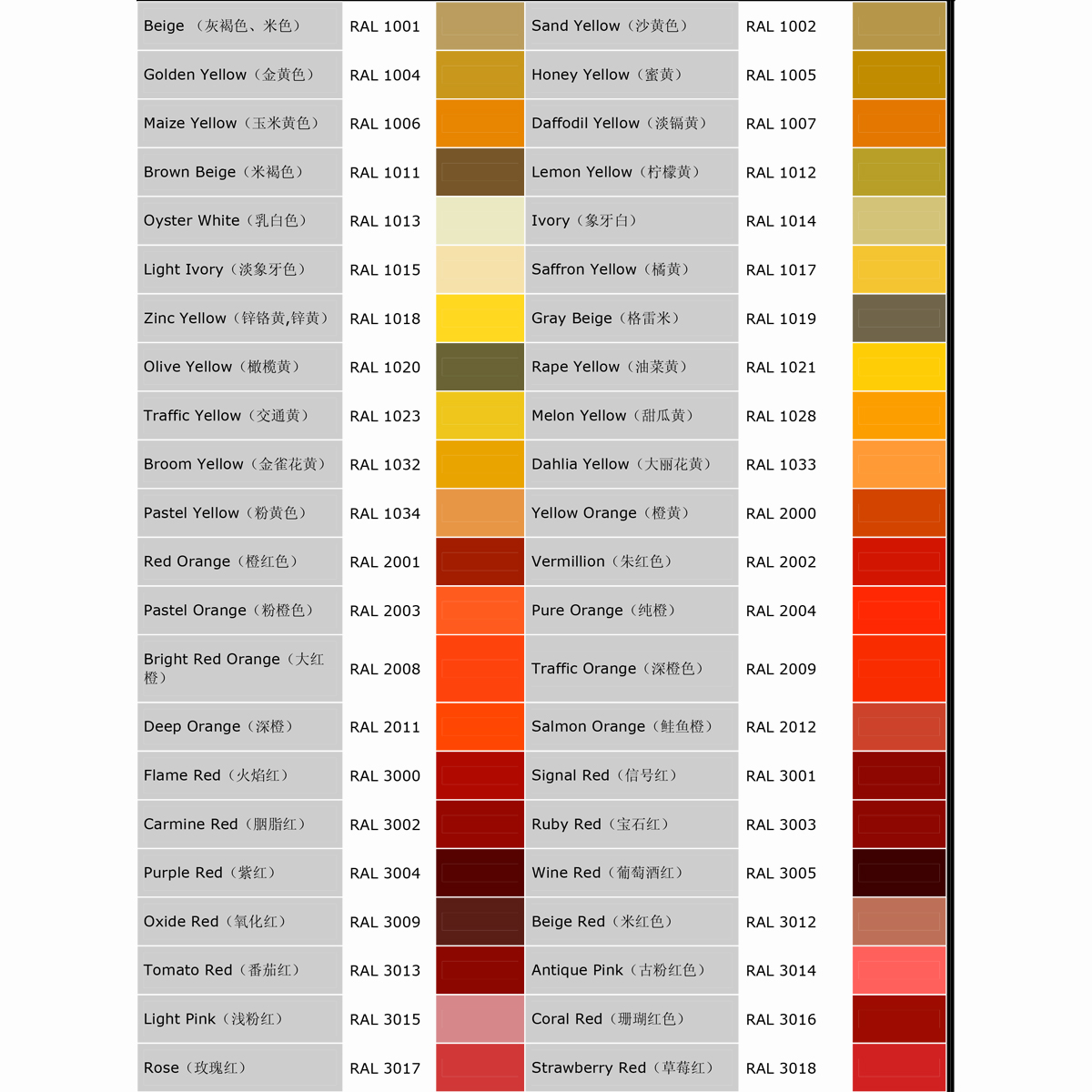 RAL COLOUR CHART